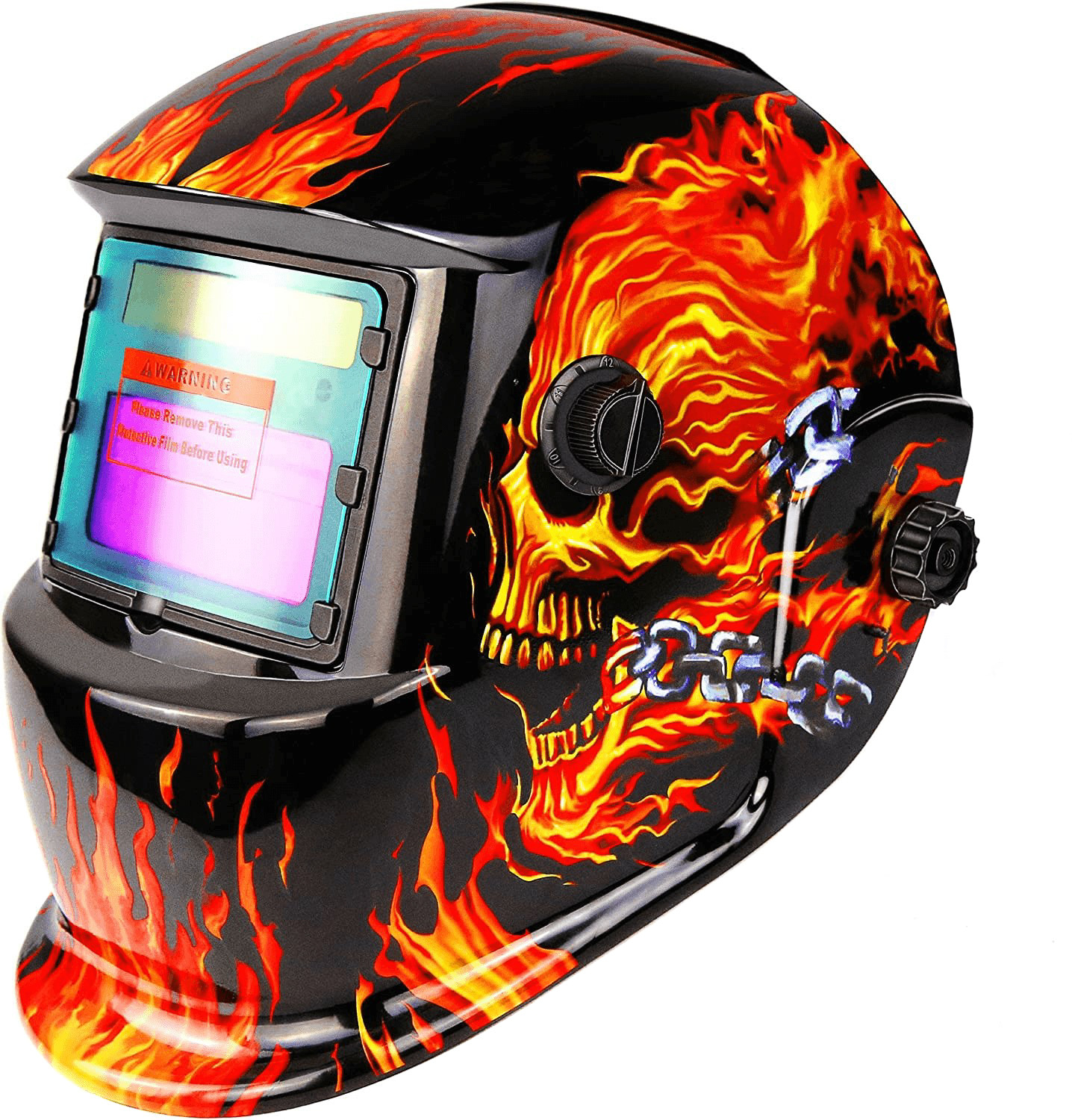 Masca este prevazuta cu un geam de protectie exterior care protejeaza filtrul de stropii de la sudare, si cu un geam de protectie interior care protejeaza filtrul de praf si alte impuritati.