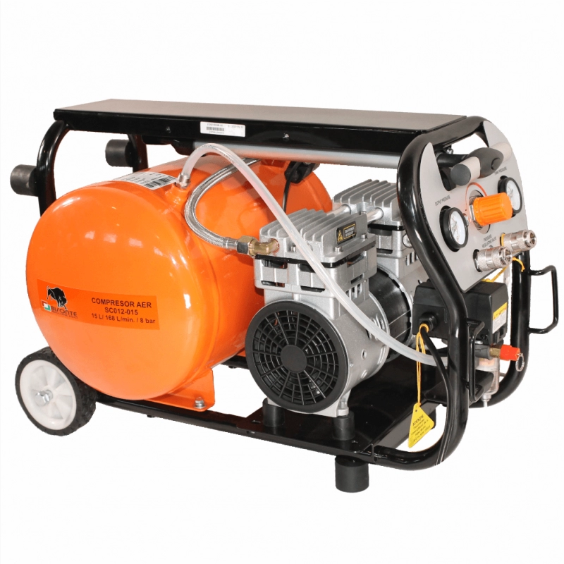 Compresor de aer cu piston BISONTE SC012-015 fara ulei 230V 1,2 cp debit 168 l/min presiune 8 bar