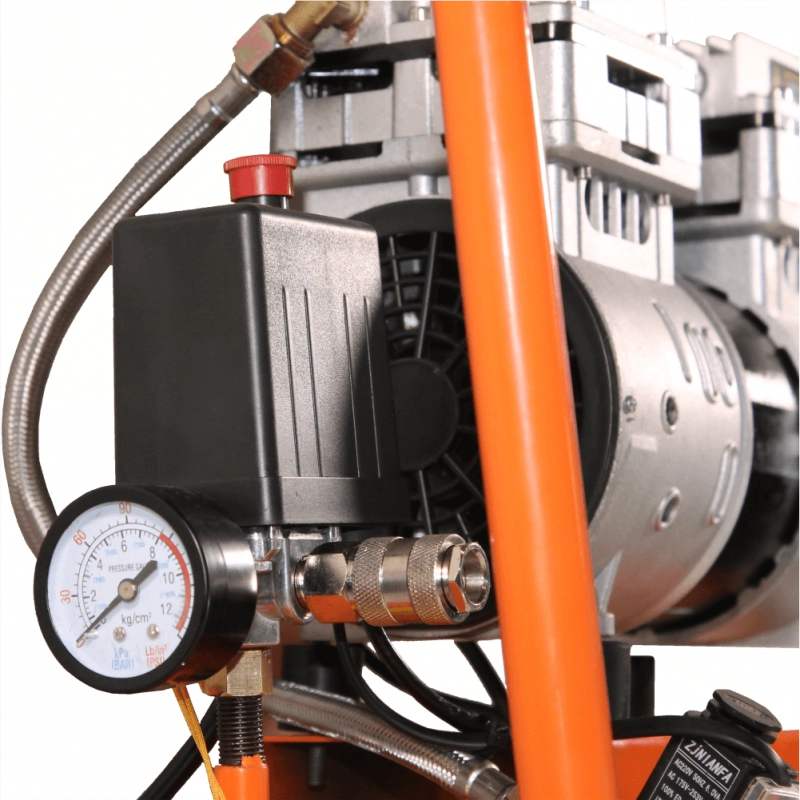 Motorul puternic generează rapid presiunea de lucru de până la 8 bari, datorită compresorului de