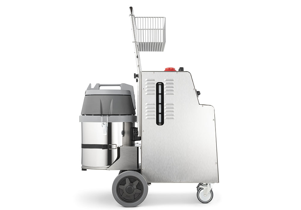 - Robust și rezistent datorită structurii din oțel inoxidabil, extrem de manevrabil datorită căruciorului dotat cu mâner ergonomic și coș practic pentru obiecte. S-TEAM 10 VH este ideal pentru utilizare în industrie, sănătate, alimentație, transport și instituții publice.