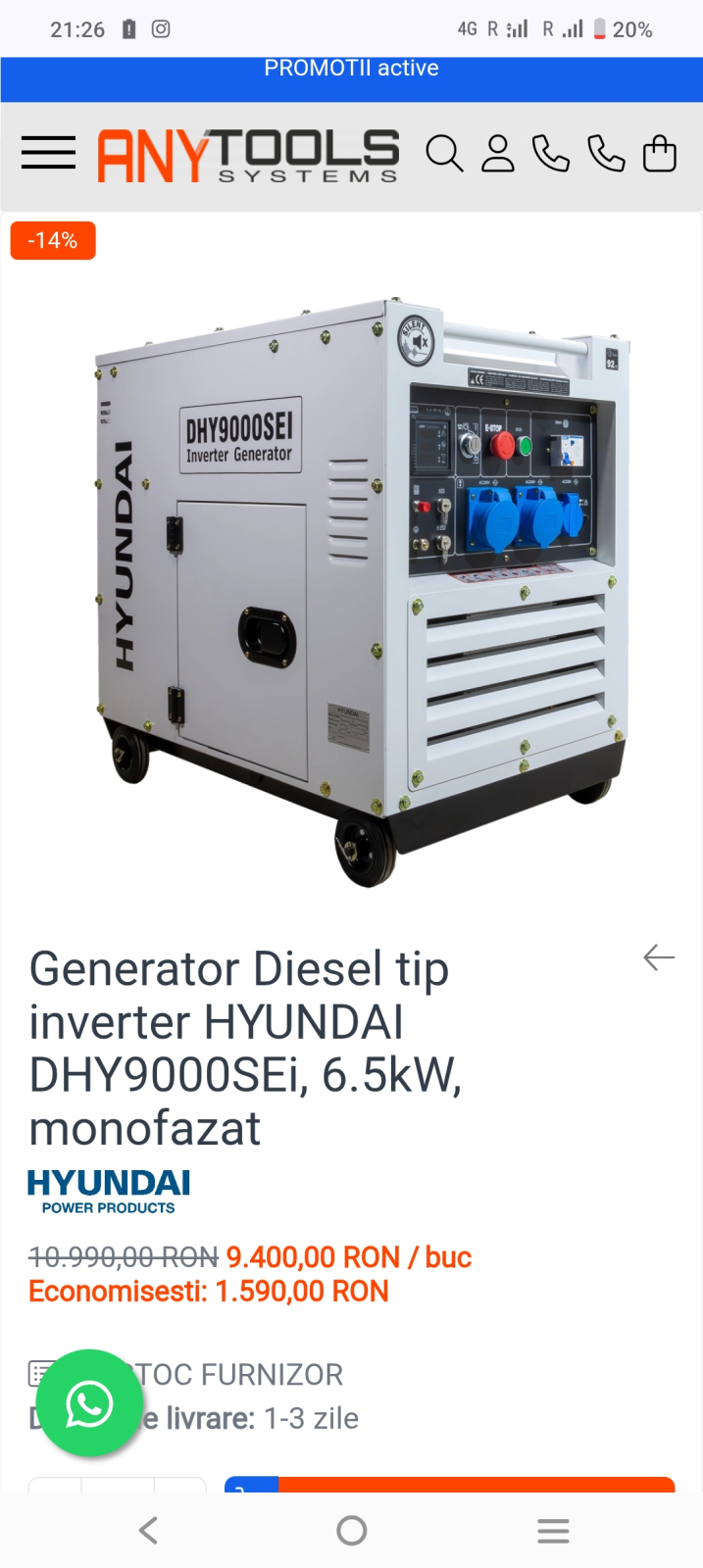 - Hyundai DHY9000SEI este unul dintre cele mai populare generatoare diesel sub 10kW disponibile pe piață astăzi. Dimensiunea compactă, puterea curată și zgomotul redus îl fac o sursă fiabilă de energie electrică de rezervă pentru afacerea sau casa ta, și este suficient de portabil pentru munca de teren.