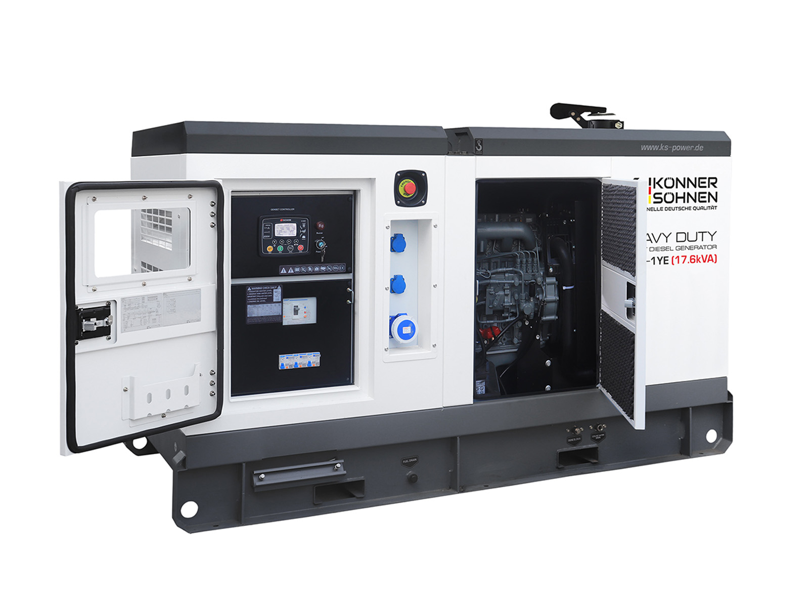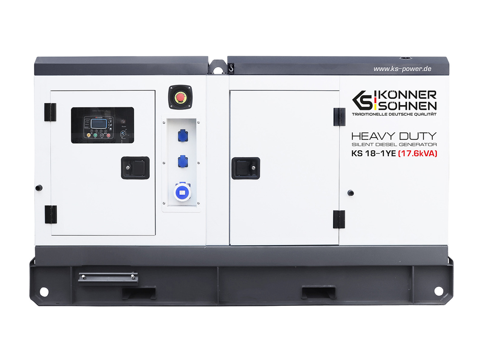 • Generatorul  diesel monofazat KS 18-1YE din seria HEAVY DUTY a marcii germane "Könner & Söhnen" este un set de generator fiabil cu o capacitate maxima de 17,6 kVA.