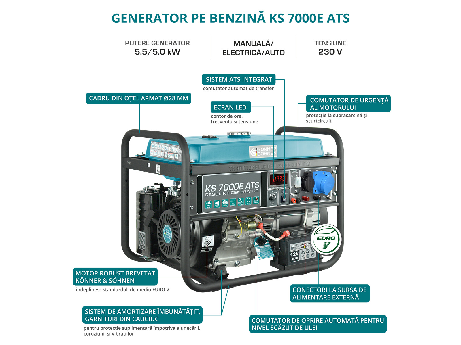 Descriere Generator monofazat pe benzina Konner & Sohnen KS 7000E ATS: