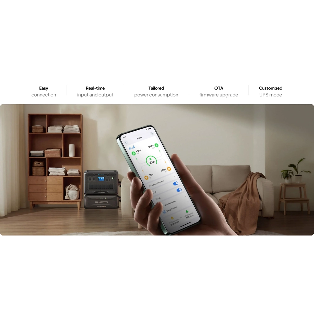Invertorul modular BLUETTI AC500 oferă o putere continuă impresionantă de 5000W, ideal pentru sisteme energetice modulare și aplicații off-grid mari. Eficient și scalabil, permite combinarea cu baterii suplimentare pentru o soluție flexibilă și puternică.