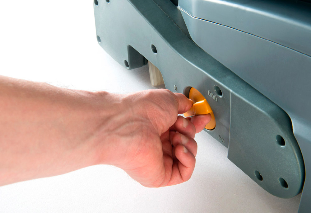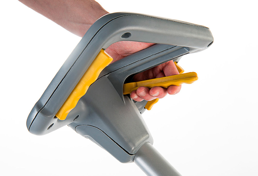 - Cu o perie cilindrică și o unitate cu trei moduri selectabile de apăsare a periei pe podea pentru a combate orice fel de contaminare
