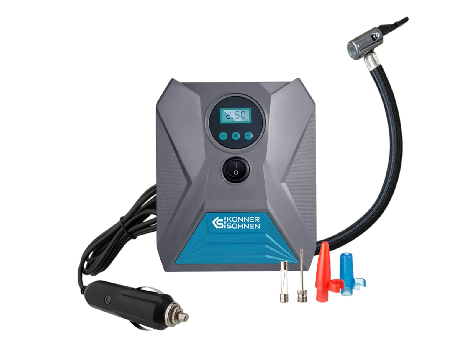 • Compresorul auto KS P10 de la Könner & Söhnen® este un ajutor de incredere nu doar pentru conducatorii de auto-moto si biciclisti, dar si pentru proprietarii de inele de inot, echipamente sportive si alte produse gonflabile. Procesul de umflare dureaza doar cateva minute. Viteza de umflare a compresorului KS P10 este de 25 litri pe minut.