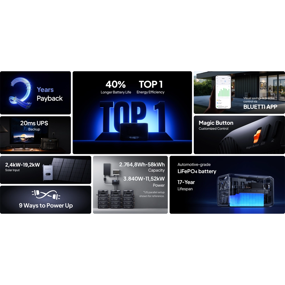 - Scalabilitate masivă: capacitatea se poate extinde la 58 kWh, suficientă pentru alimentarea întregii case în pene prelungite de curent